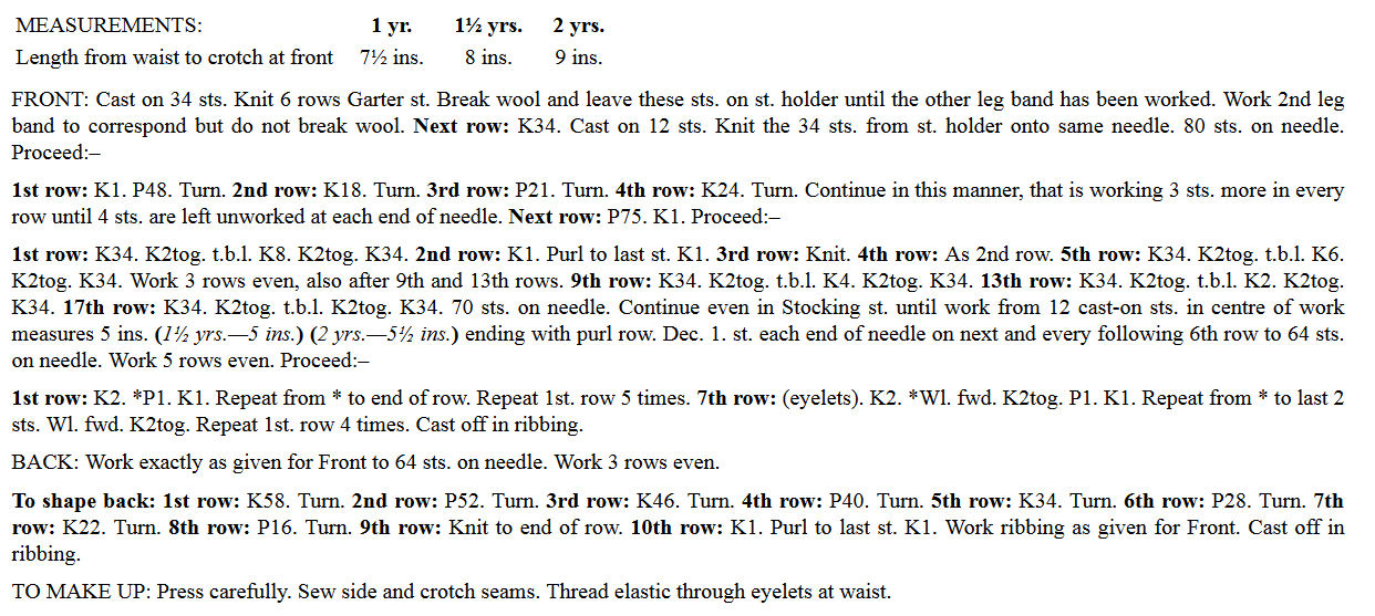 The pattern comes in three sizes, 1 year, 1 1/2 years and 2 years but please refer to the measurements below to ensure a good fit.