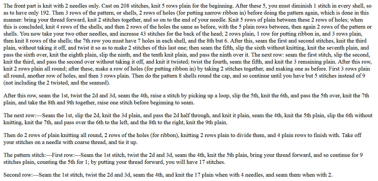 Unique Baby Gear Ideas suggests that only experienced knitters attempt it. That said, it would be greatly appreciated if those who were up to the challenge would help us out and visit our feature page to upload photos of the completed hat that we are all dying to see. It would also be helpful if our visitors could suggest modern substitutions for the yarn and needles mentioned in the original publication.