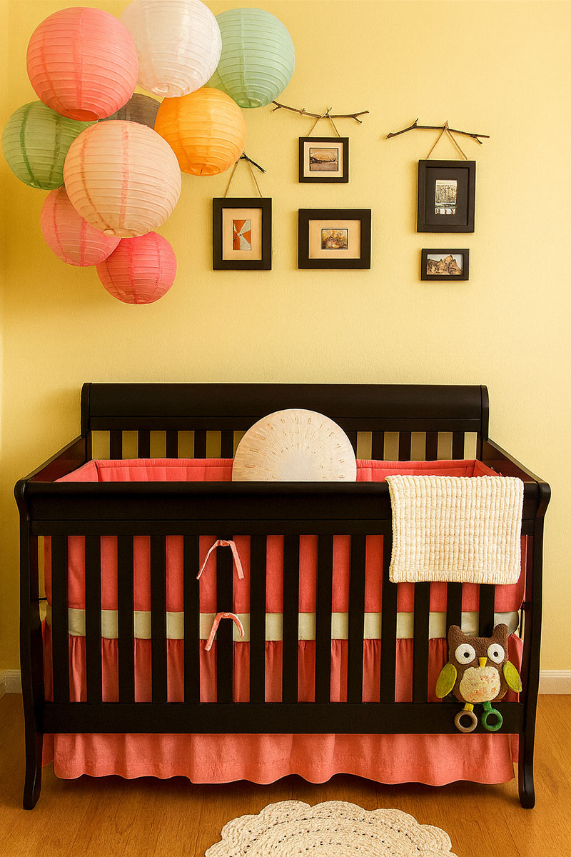 Rustic Shabby LightingI wanted lighting that would be functional not only as a source of light for the room but that would also serve as a mobile to entertain the baby. The colorful arrangement also serves as a mobile. I went by a